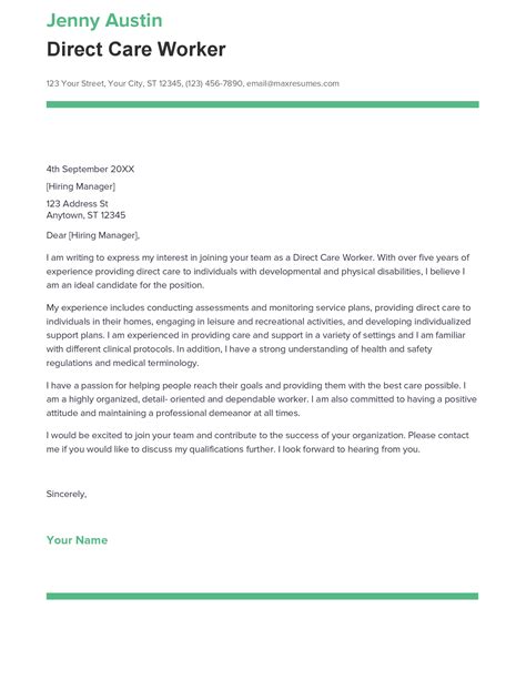 Cover Letter For Direct Care Worker . A direct care worker cover letter must demonstrate the personality and. A great direct care staff cover letter can help you stand out from the competition when applying for a job.